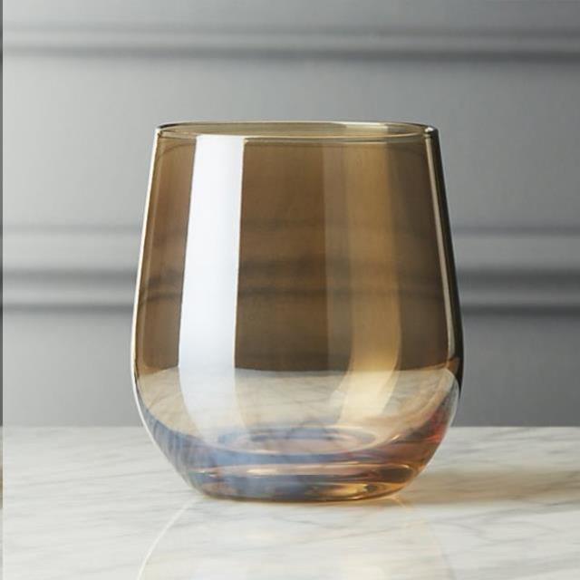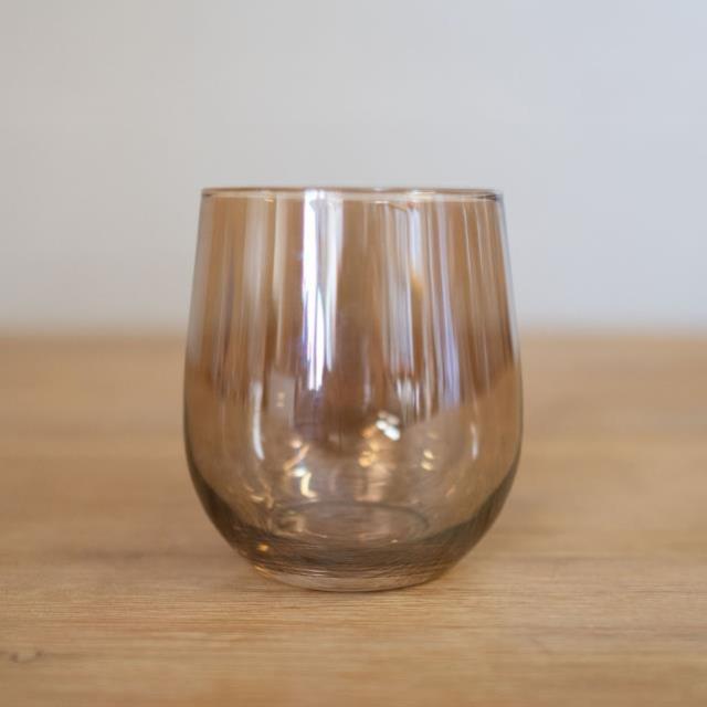 GLASS, METALLIC BEIGE WINE STEMLESS